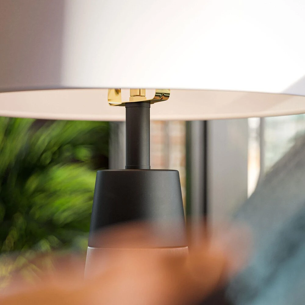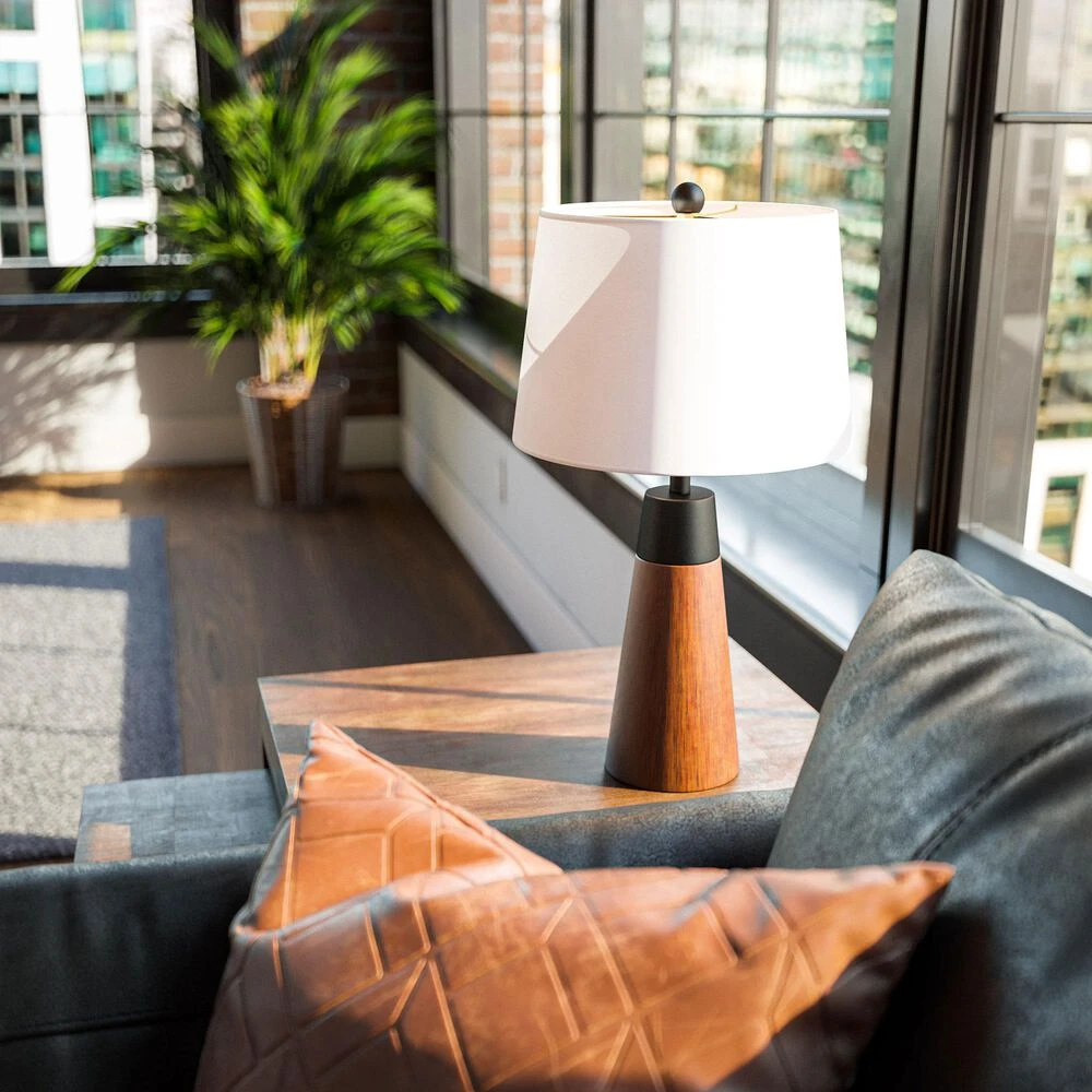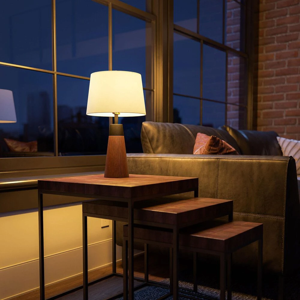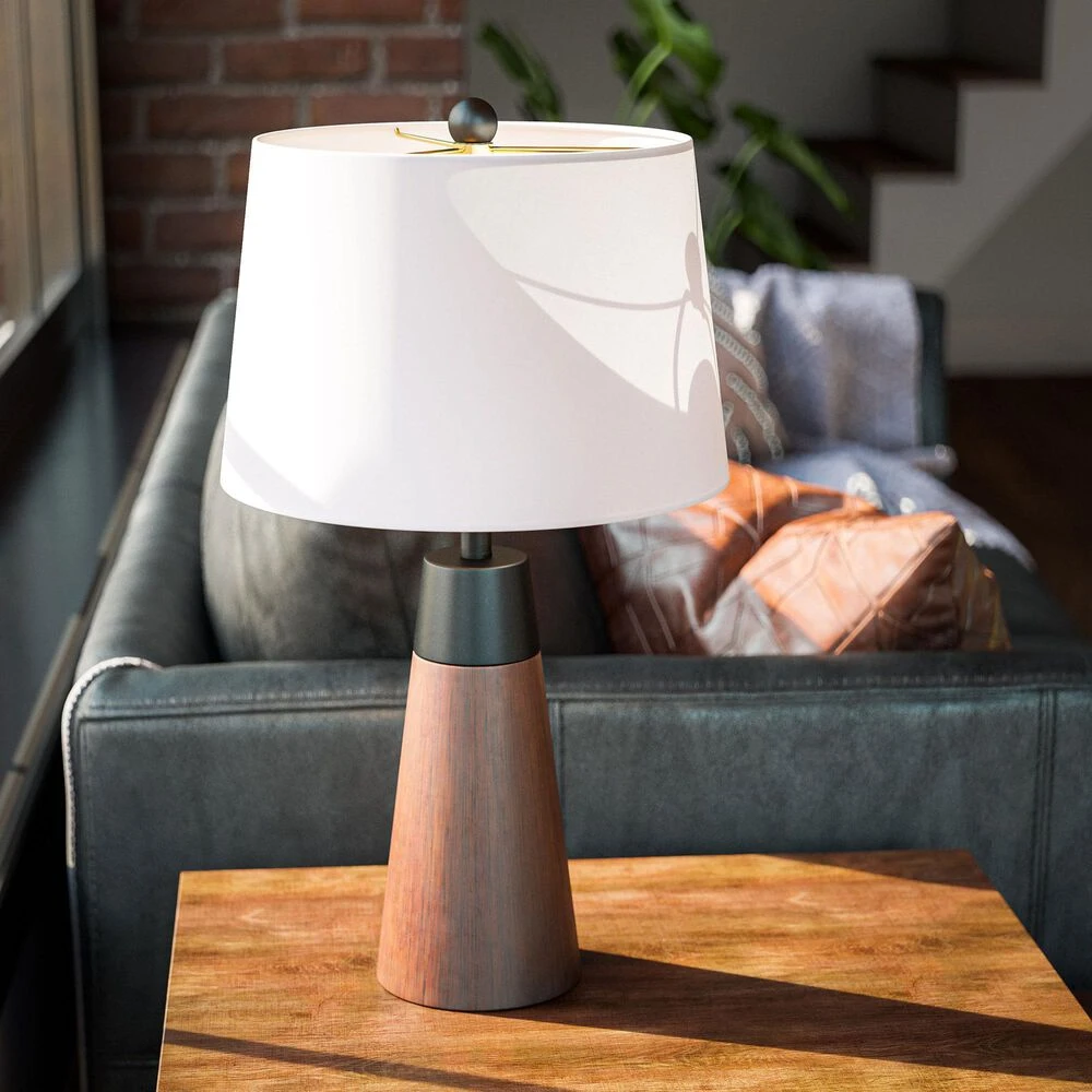 Two for the price of one – this effortlessly chic throwback table lamp set is perfect for creating a retro feel in your Mid Century Modern living room or master bedroom. Faux wood finish is paired with matte black and a crisp white shade, creating brightly diffused lamp. Place them on matching end tables or nightstands, or place in separate rooms to create a cohesive look.