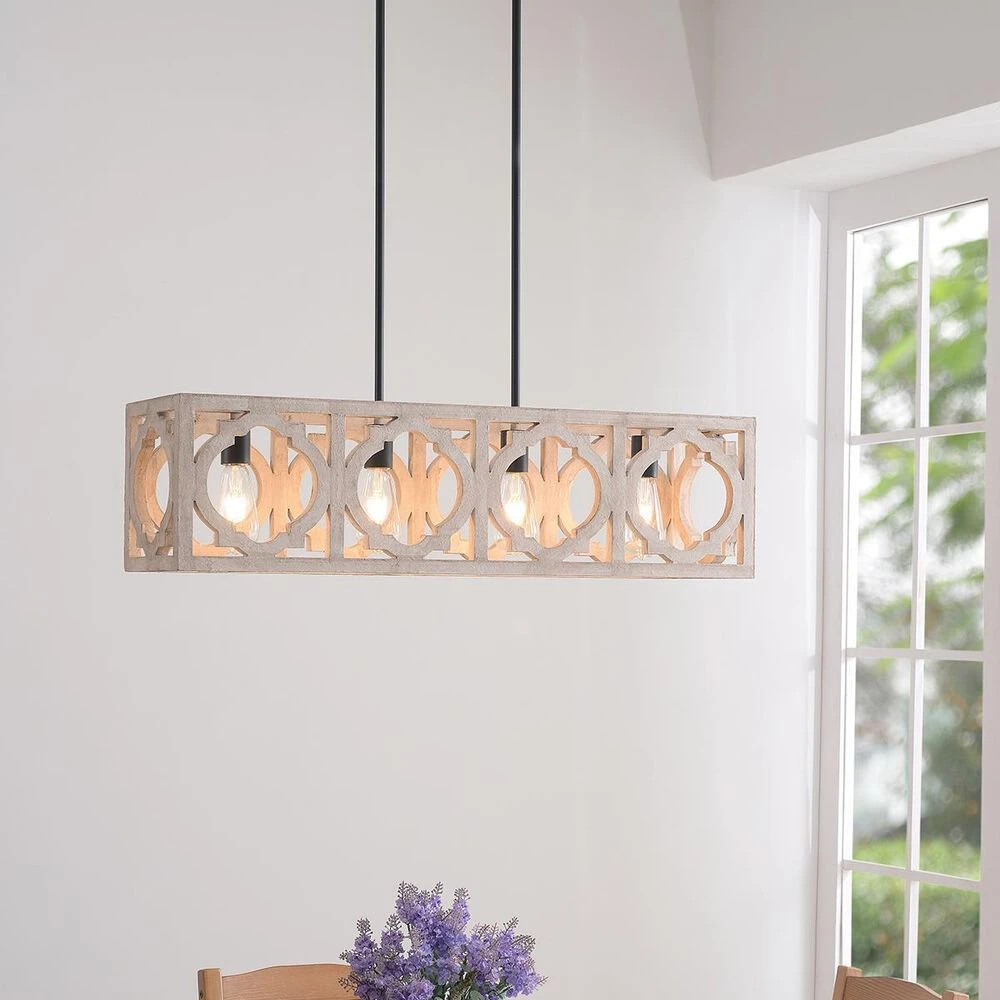 - Modern farmhouse 4 light kitchen island fixture with quatrefoil open frame design