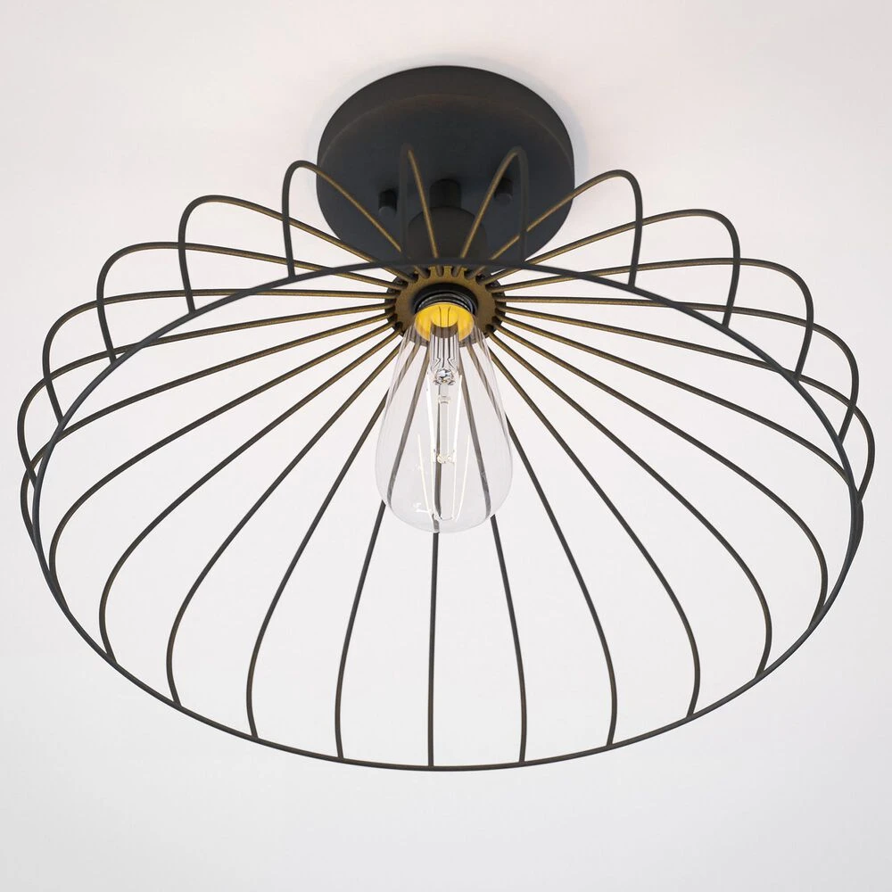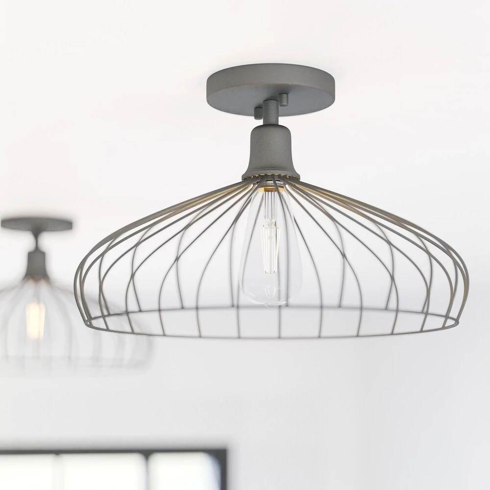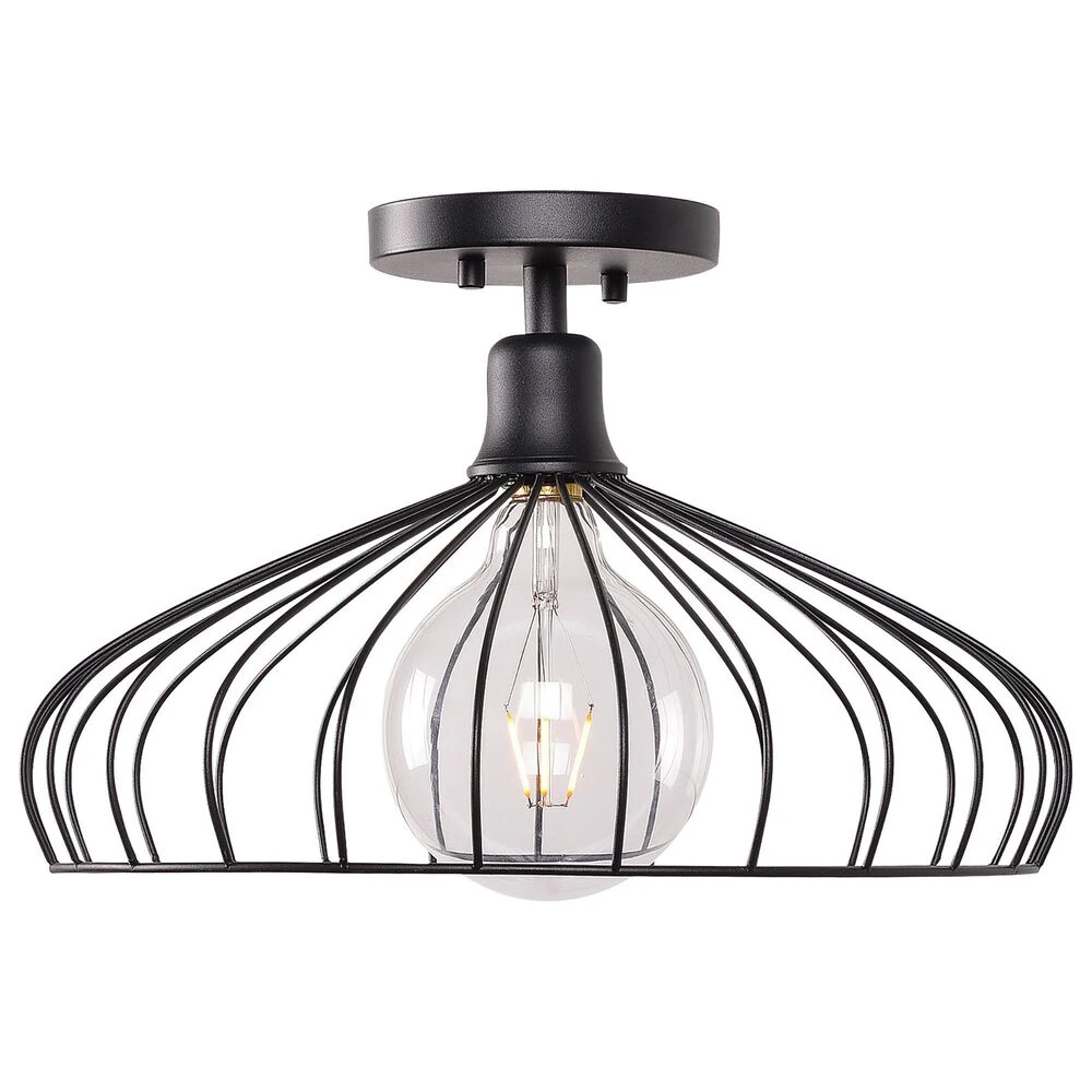 This edgy urban contemporary semi flush is sure to bring plenty of bright lighting and effortless modern style to your small space apartment. A matte black finished wire frame gives a modern industrial feel, while the open shade allows your choice of bulb to freely shine – perfect for use with a vintage-style Edison bulb or other designer bulb. The low profile is ideal for any low-ceiling bedroom, hallway, dining room, or entryway.