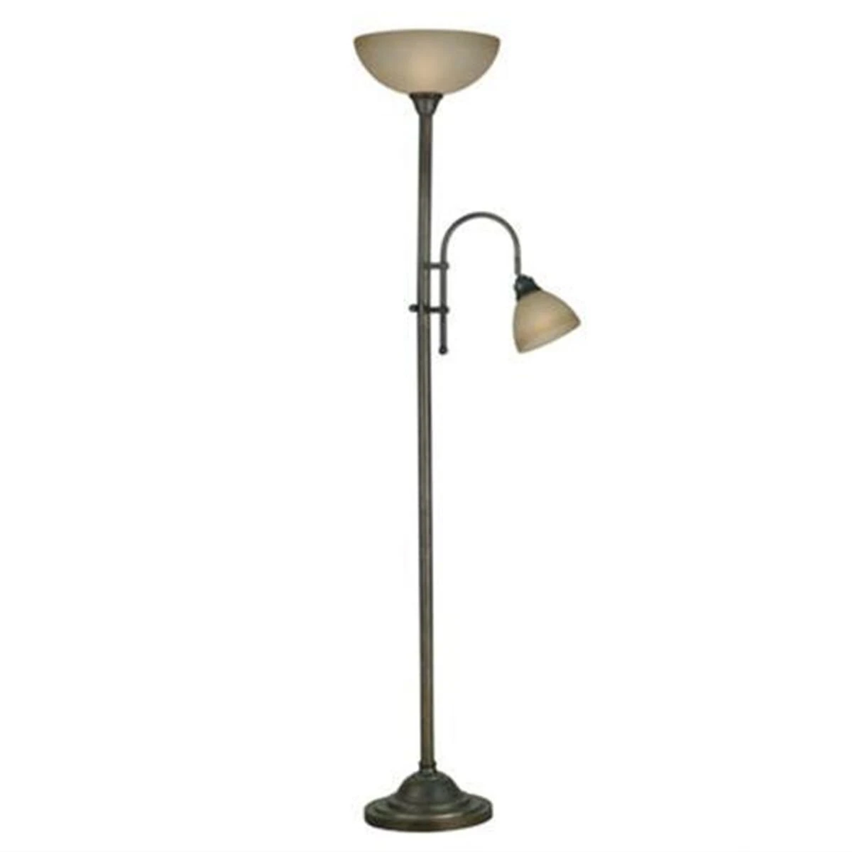 Handsome task lighting, with the look of aged Bronze and warm, smooth glass bowls, complements a traditional motif. The dual purpose Torchiere and versatile desk lamp bring classic understated details and plenty of style.