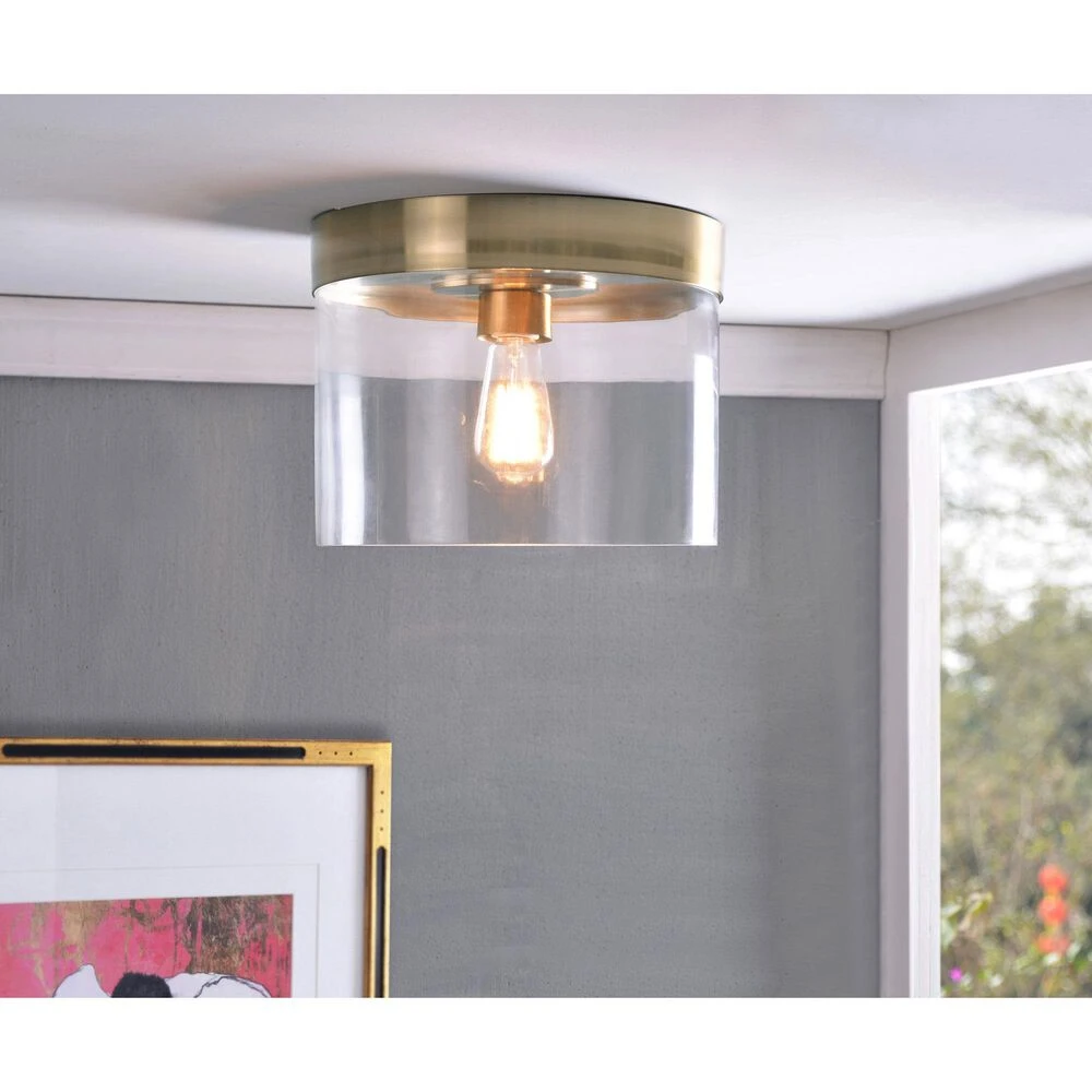 Decidedly on-trend with a sleek antique brass finish and crystal clear shade, this versatile flush mount provides the perfect accent lighting for any home. Especially well-suited to small spaces, the crystal-clear glass shade allows room-filling illumination while lending itself to a wide variety of styles. Picture the minimalist light illuminating your modern farmhouse dining table, or imagine a vintage-styled Edison bulb illuminating from within the dynamic glass to set a rustic atmosphere for your industrial-modern bar. With the crisp, clean lines and glossy glass, the design possibilities are truly endless.