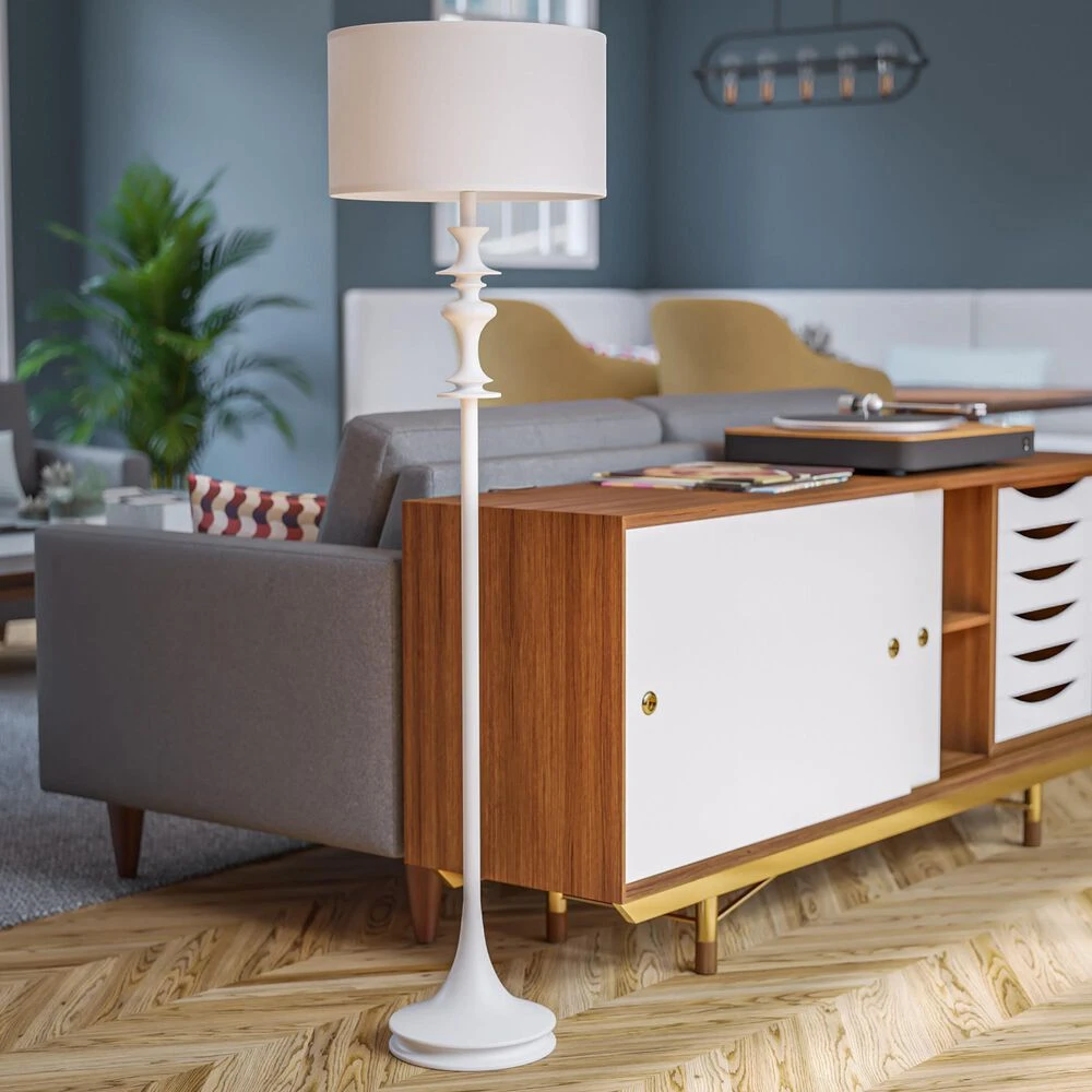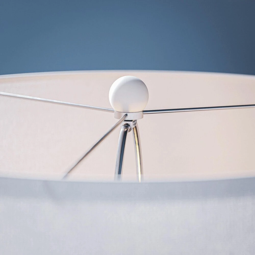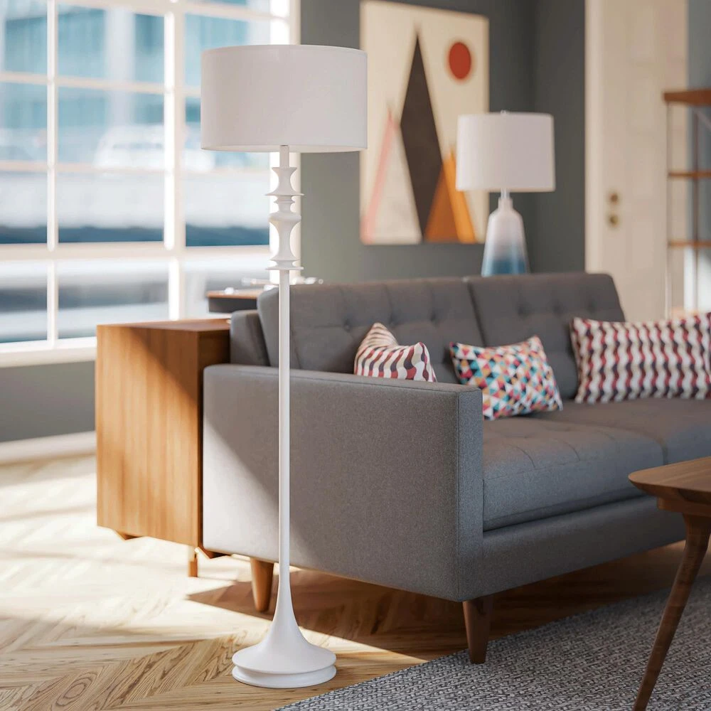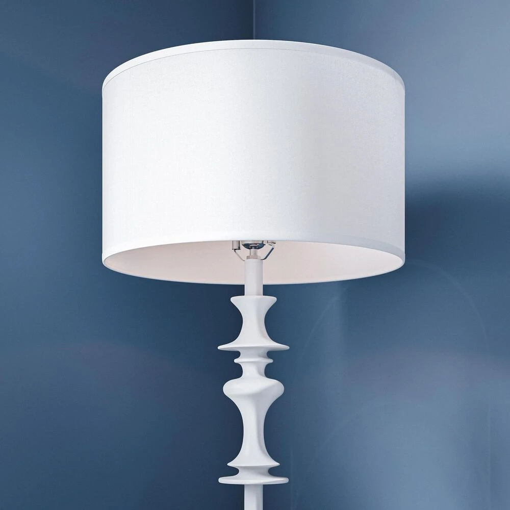 - Crisp white drum shade creates brightly diffused, room-filling light