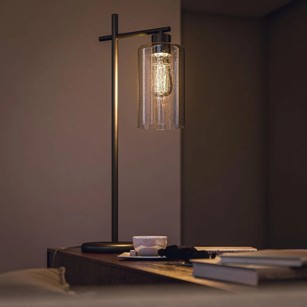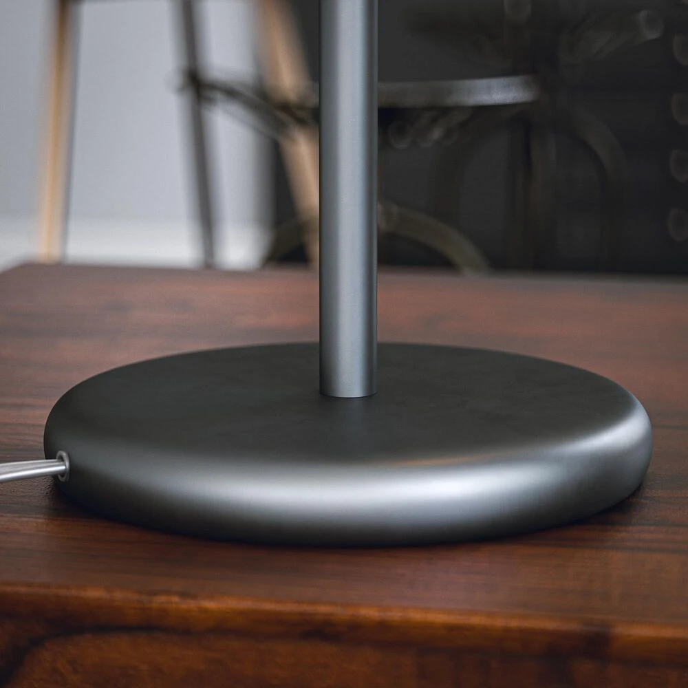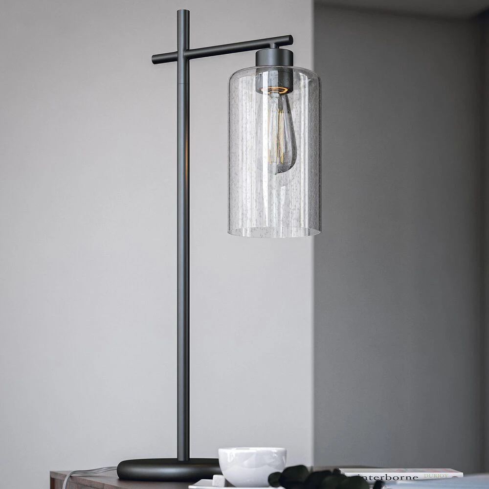 This tall desk lamp delivers minimalist style and bright lighting to your urban contemporary home office. There is elegance in the simple form of this lamp, further enhanced by the quality graphite finish and clean lined profile. A crystal clear glass shade allows the light to flow freely from the included LED Edison bulb, making this desk lamp perfect for reading or for use as a task light while you work from home in your home office. A convenient line switch allows you to easily operate you lamp, also keeping any unsightly socket switches from cluttering the simple design.