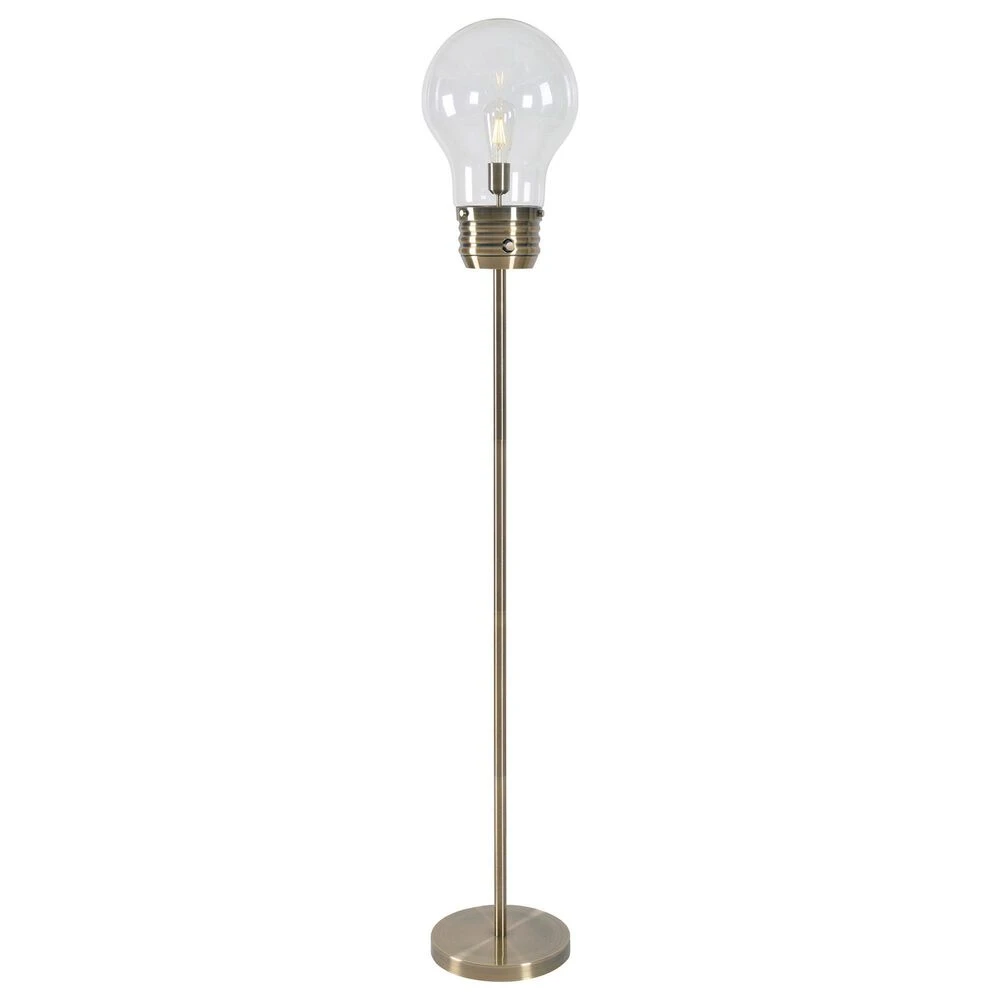 Creating an authentic look and feel to that of a genuine incandescent light bulb, this floor lamp is finished with an antique brass accent to mimic the look of a bulb base. This playful floor lamp includes a vintage-style LED Edison bulb within its clear glass shade, creating bright accent lighting for your living room, bedroom, home office and more.