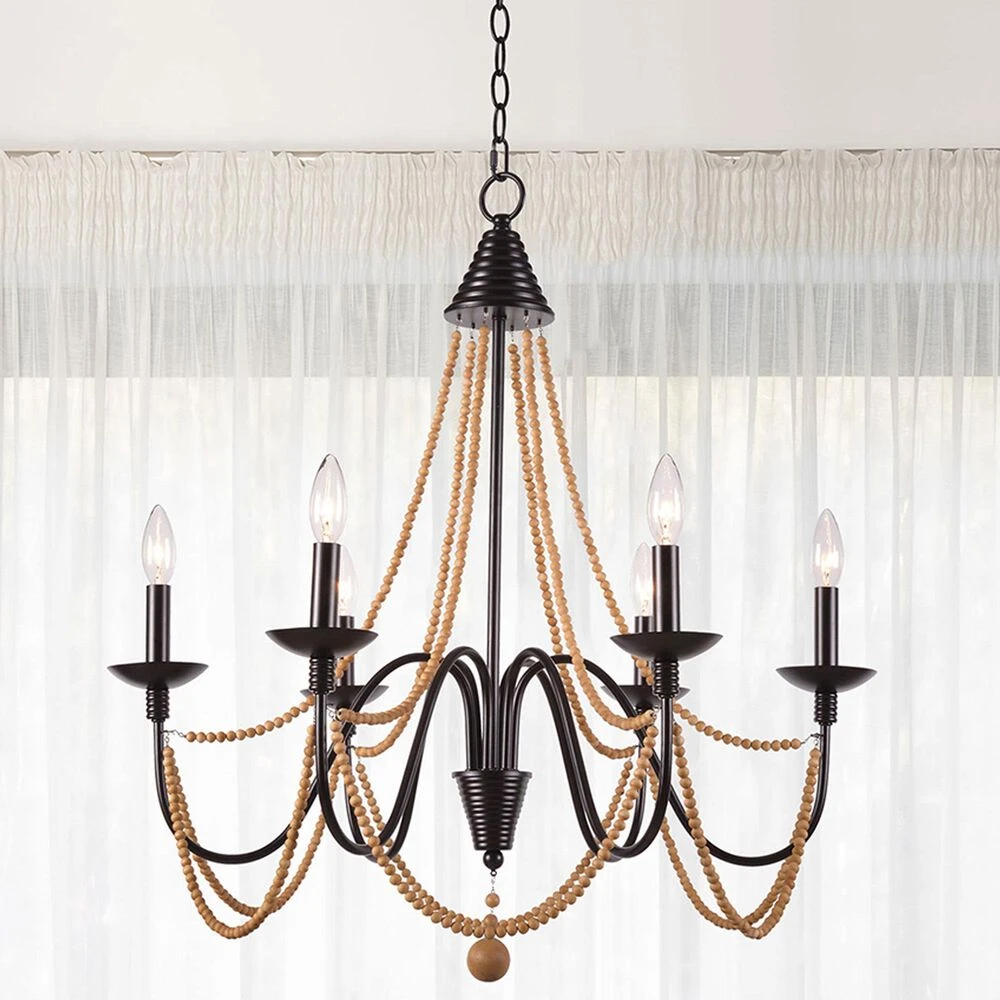 - Rustic boho 6 light beaded chandelier