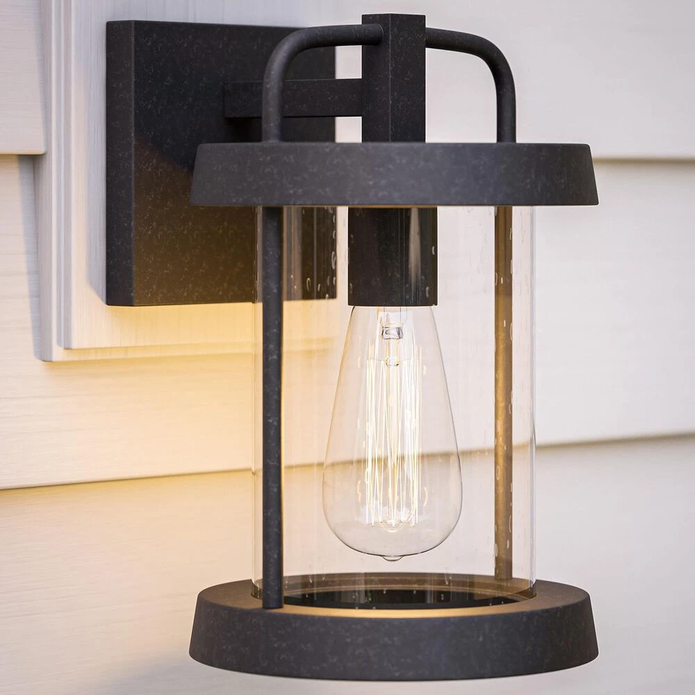 A sophisticated, yet casual accent on your front porch, this small lantern will guide your guests to your modern country cottage with style and grace. The rich forged graphite finish and clean, simple lines lend a modern look to this casual wall sconce, yet slight warm undertones and the crystal-clear seeded glass shade pulls you in with inviting light. Perfect for entryways, install a lantern on either side of your cross-braced front door to create a modern farmhouse vibe for your home. This lantern is equally well-suited for barns, garages, sheds and pathways with its bright light and easy installation. To really drive home the farmhouse feel, use a vintage style Edison bulb or other designer bulb and add your own flair to this versatile piece.