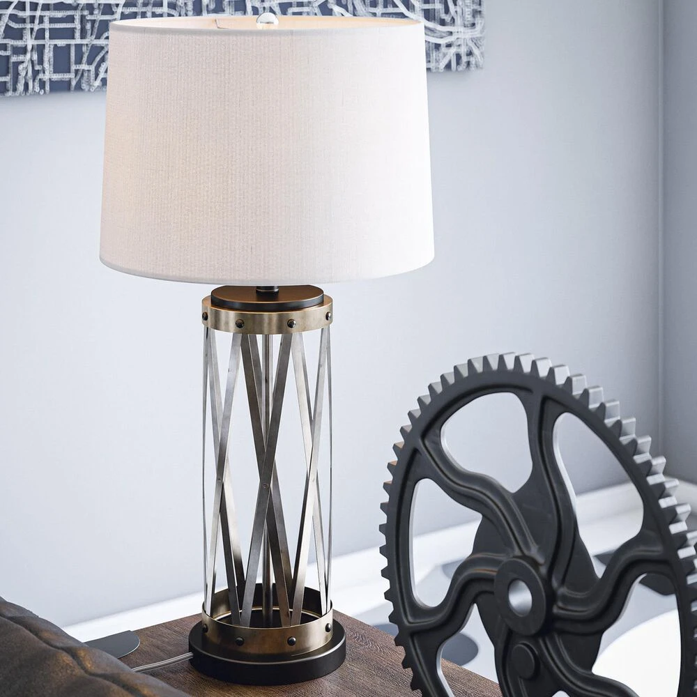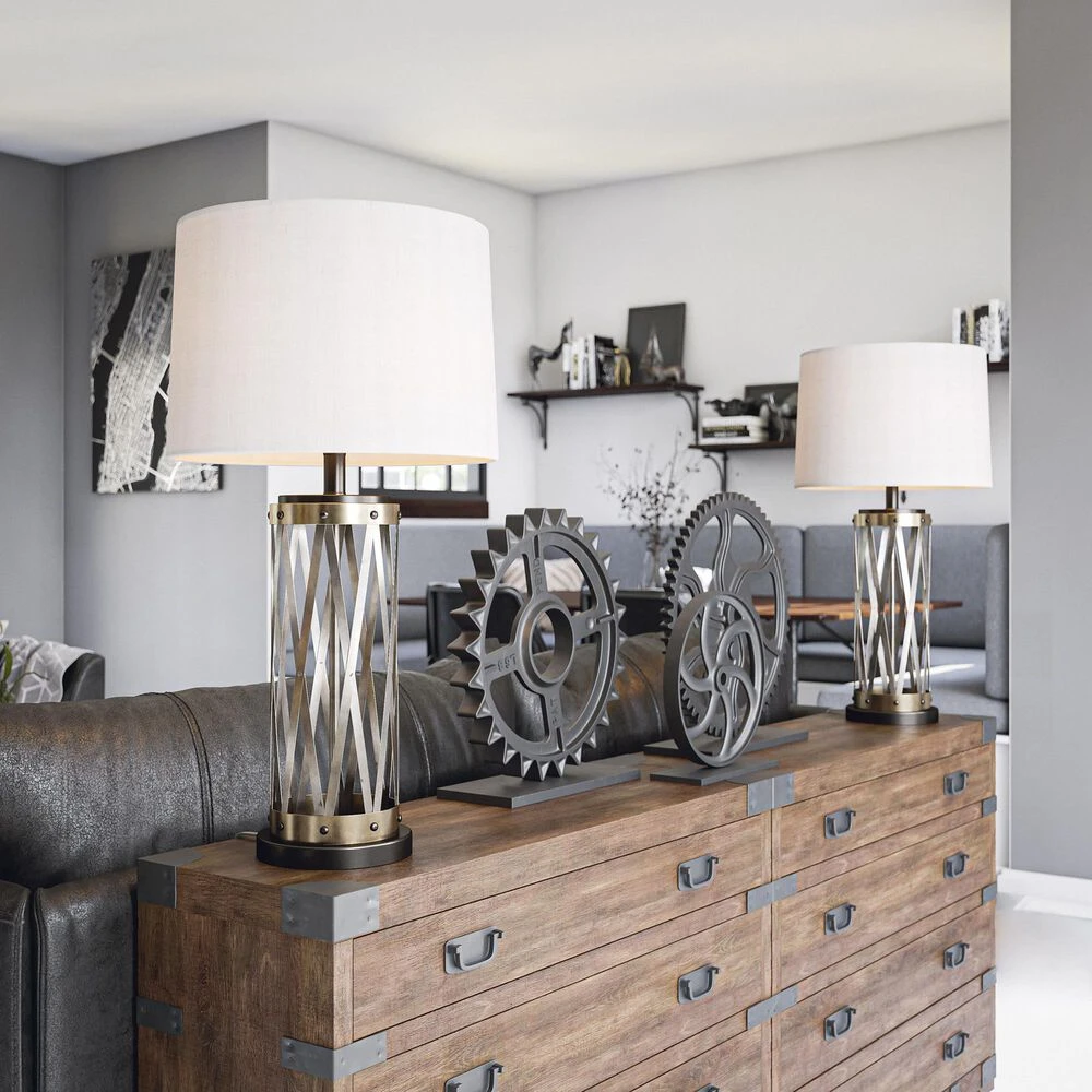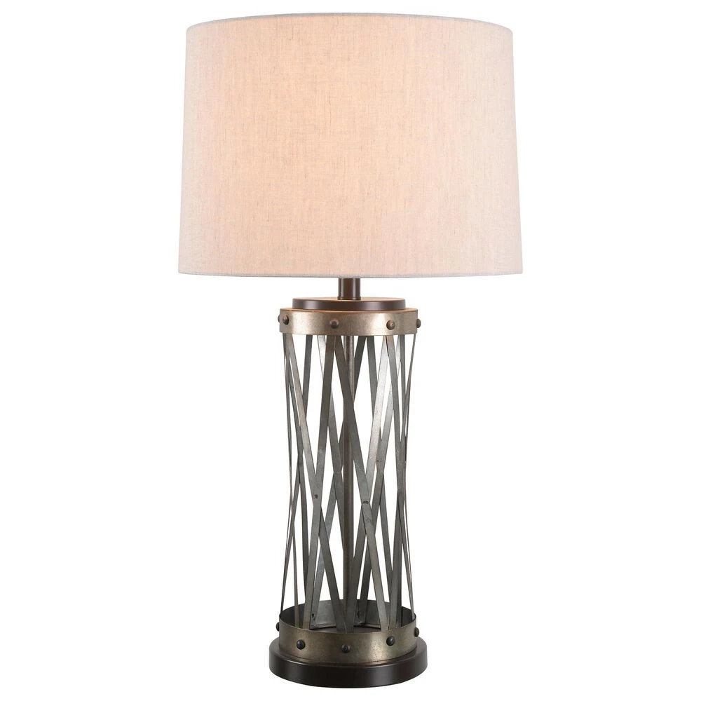 The perfect bridge between urban industrial and vintage farmhouse, this rustic tall table lamp features a galvanized weathered metal open body construction and a crisp tapered gray linen drum shade – perfect for your edgy contemporary loft. Brilliant adjustable 3-way lighting lets you customize the lighting profile from a warm, atmospheric glow to bright, room-filling light with a simple twist of a switch.