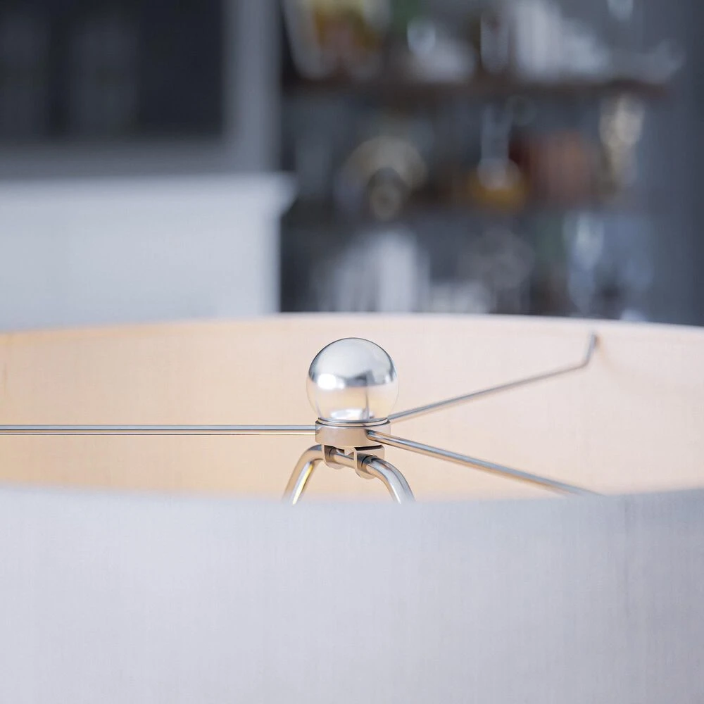 - Gray linen tapered drum shade for brilliantly diffused light