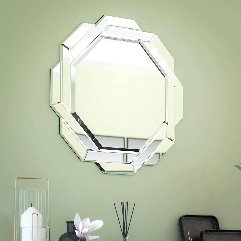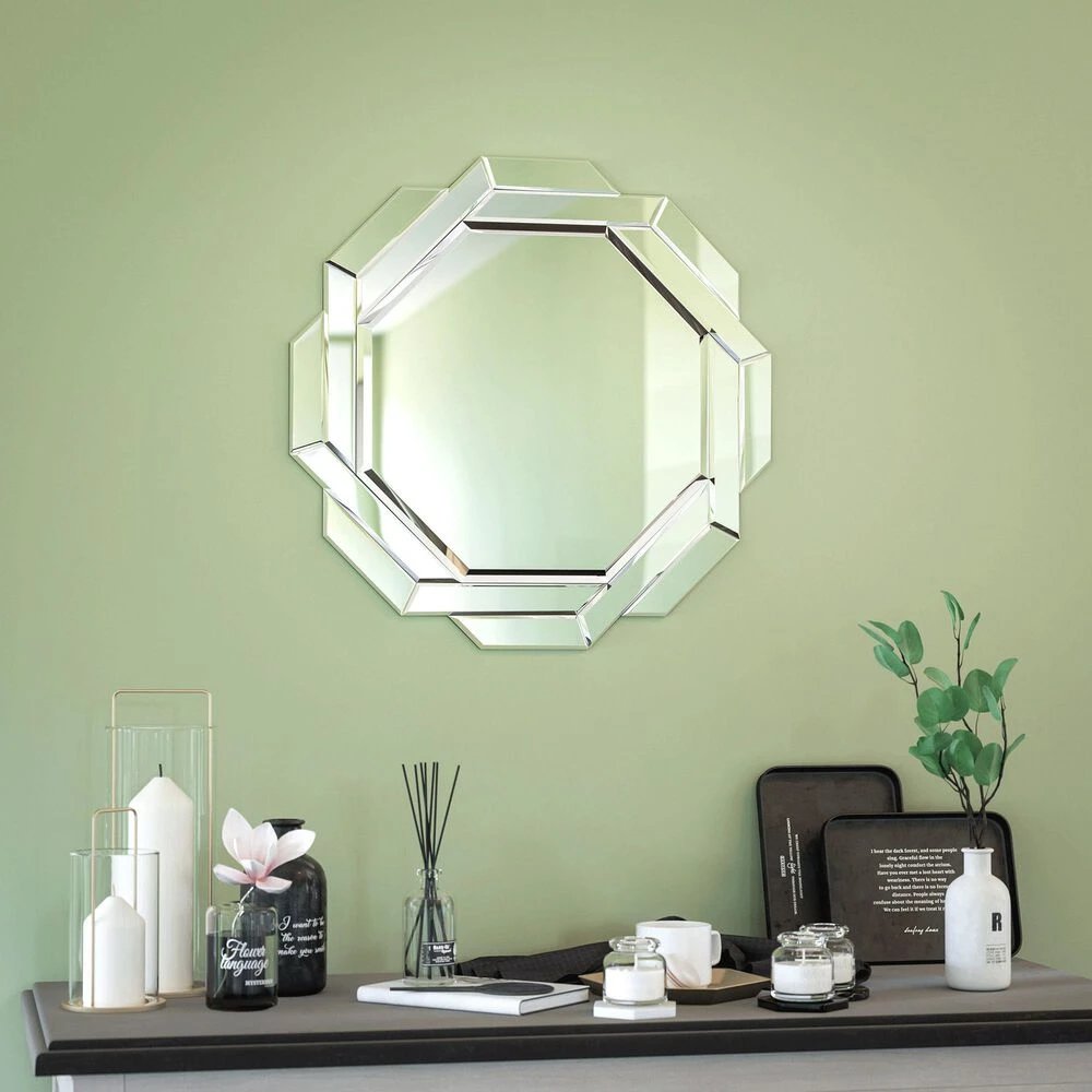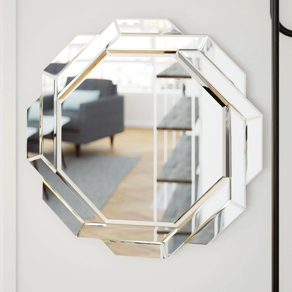- Large central mirror surrounded by a series of smaller beveled mirrors
