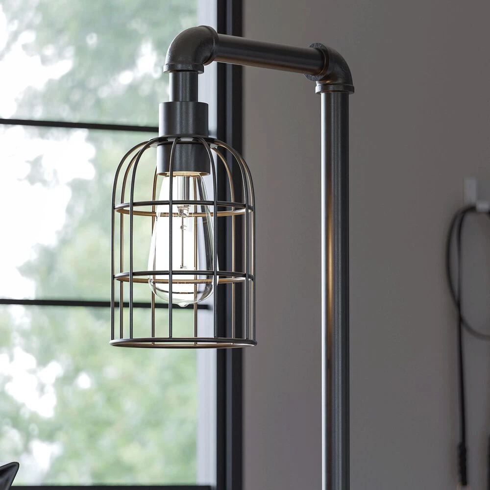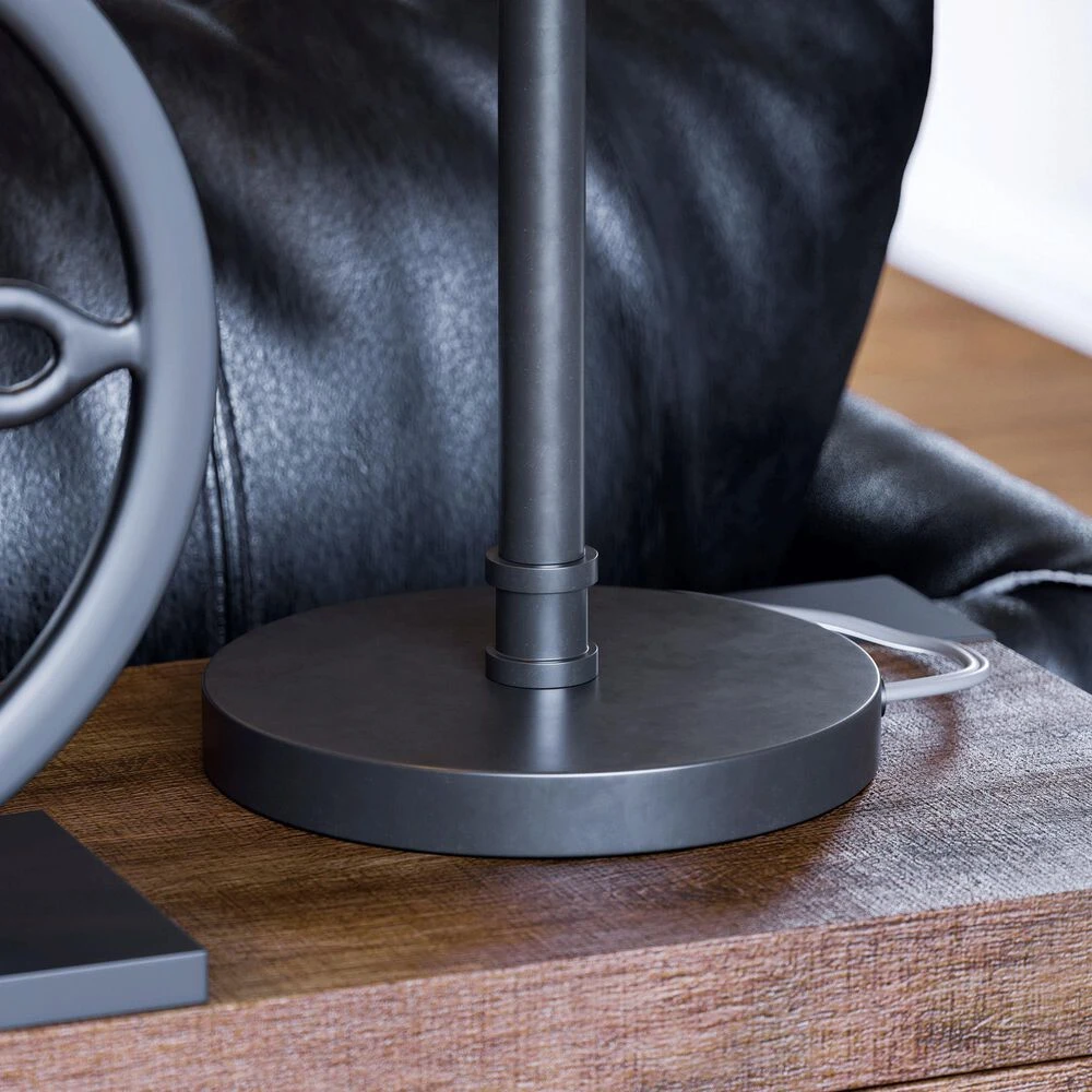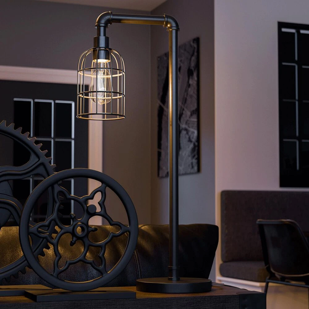 Looking to bring a fresh dose of style and function into your space? This edgy, contemporary table lamp brings the best of task lighting to your urban home office. A rich bronze graphite finish complements the open cage-style shade – perfect for use with the included vintage-style LED Edison bulb.