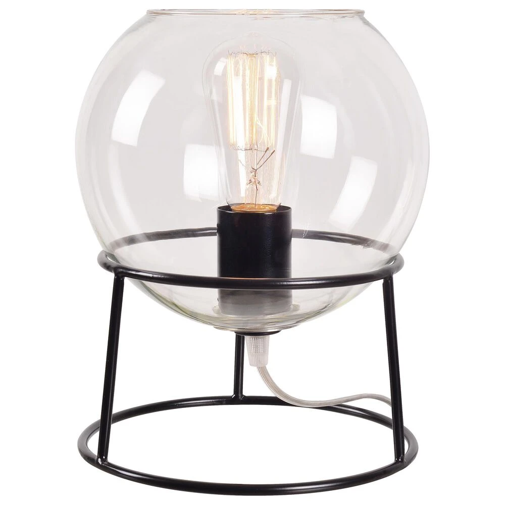 Bold Mid-Century Modern style comes full circle with this orb-like accent lamp. This stylish accent lamp consists of a vintage-style LED Edison bulb encircled by a crystal-clear glass orb that sits on a pedestal of black metal. Operated with a simple flip of a line switch, this small accent adds plenty of warm, atmospheric light and urban contemporary charm to your desk, end tables, nightstands and more.
