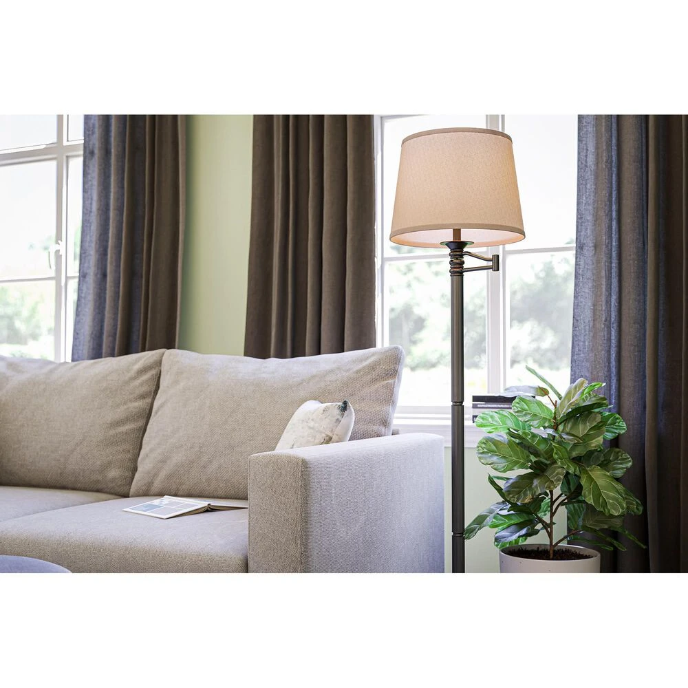- 59-inch height and swing arm function makes this floor lamp perfect for placement behind furniture or beside any sofa, loveseat, accent chair or desk