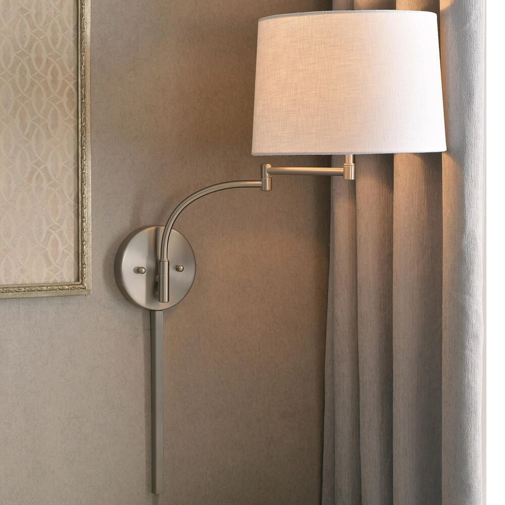 Whether youre catching up on late night reading or simply lounging the day away in bed, this swing arm lamp always provides just the right amount of light for any time of day. Swing the lamp over to direct light to your latest novel, or swing it against the wall to neatly store it away. Since this lamp is wall-mounted, you have plenty of space on your nightstands for knick knacks, books, or a midnight snack.