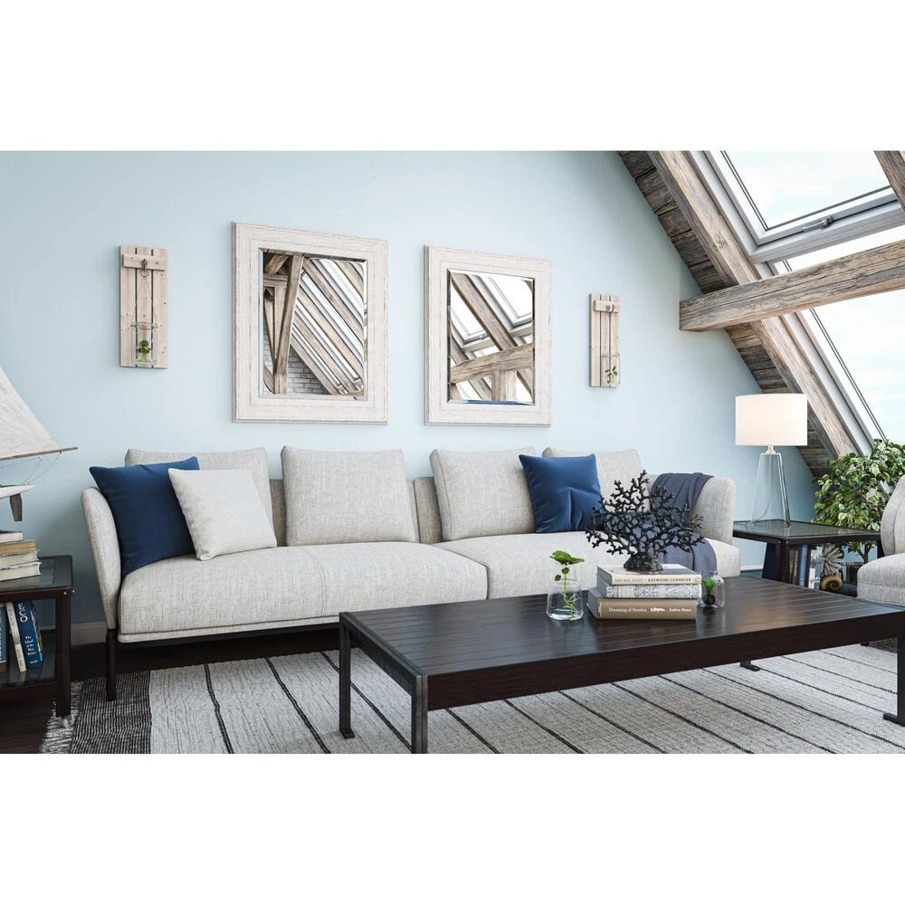 Comfortably casual for endless design possibilities the distressed white wood finish of this rectangular mirror is the perfect finishing touch for any coastal, farmhouse or transitional living space. Easy to level with the included M-Hook, simply mount your mirror and make small leveling adjustments without taking it off the wall. This quality silver backed mirror adds plenty of vintage charm without overwhelming your decor perfect for tying together a room.